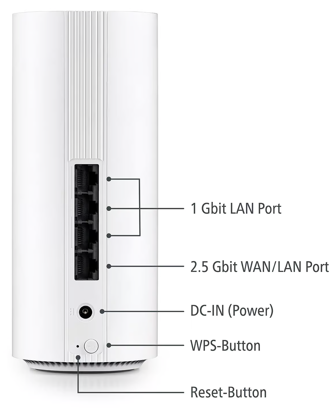 Ethernet-Anbindung Zuverlässige Anbindung kabelgebundener Endgeräte durch einen 2,5 Gbit/s-Port und drei Gigabit-Ports