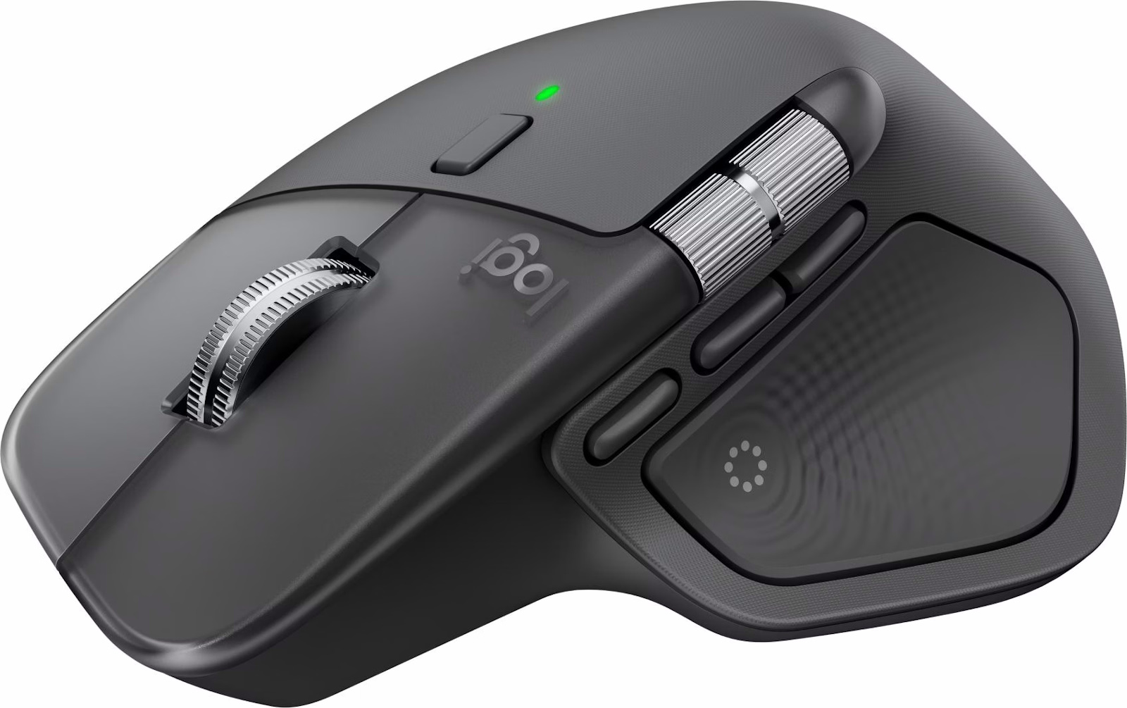 • Das kohlenstoffarme Aluminium in der MX Master 4 thumbwheel wird mit erneuerbarer Energie und nicht mit fossilen Brennstoffen für eine geringere CO2-Bilanz hergestellt