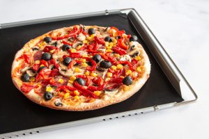 Jetzt können Sie die Pizza oder Ihren Pflaumenkuchen endlich wieder richtig dick belegen. Diese Folie auf dem Backofenboden fängt alles auf und lässt sich leicht reinigen. Die mühsame Schrubberei nach dem Backen ist endlich Geschichte.