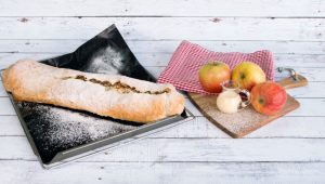 Die Form muss eingebacken werden, d. h. bei den ersten drei Backvorgängen sollte der Teig gut bemehlt werden, bevor er in die Form eingesetzt wird.
