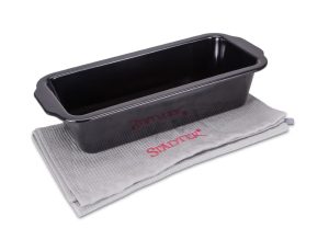 we love baking – Brotbackform EMAILLE mit Geschirrtuch – Black Edition