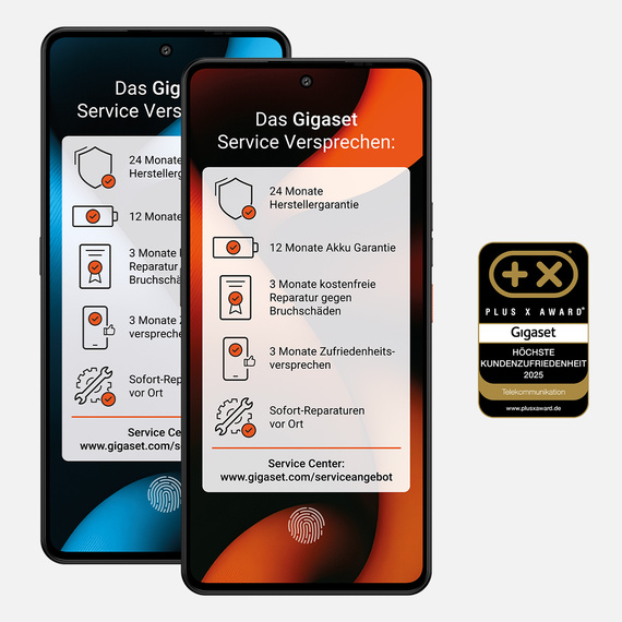 Ergänzend zur hochwertigen Verarbeitung bietet Gigaset seinen Kunden ein umfassendes Service-Versprechen. Das GS6 und GS6 PRO sind mit einer 24-monatigen Herstellergarantie und einer 12-monatigen Garantie auf den Akku ausgestattet. In den ersten drei Monaten profitieren Kundinnen und Kunden zusätzlich von einer kostenfreien Reparatur bei Bruchschäden sowie einem 3-Monate-Zufriedenheitsversprechen. Mit diesem Angebot setzt Gigaset Massstäbe in puncto Kundenservice und Verlässlichkeit – schnell, transparent und direkt aus Deutschland.