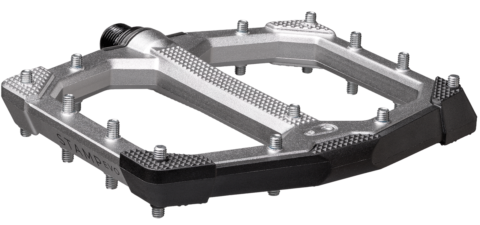 Mit einem Gewicht von 418 g (Small) beziehungsweise 464 g (Large) pro Paar positioniert sich das Stamp Evo als robustes High-Performance-Pedal für moderne Trail- und Enduro-Bikes.