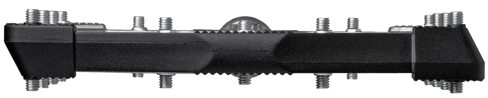 Für maximalen Grip sorgen 13 verstellbare Traktionspins pro Seite, während die ausgeprägte konkave Plattform den Fuss förmlich ins Pedal «setzt». Zusammen mit der sehr flachen Bauhöhe von nur 11 bis 15,5 mm entsteht eine direkte Verbindung zwischen Schuh und Pedal – für präzise Kontrolle in jeder Fahrsituation.