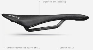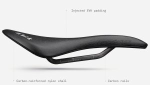 Ein High-Performance-Sattel mit stromlinienförmiger Form und konisch zulaufendem Übergang von der Nase zu den Flanken. In Kombination mit leichter EVA-Polsterung und Carbon-Streben sorgt er für ein direktes, reaktionsschnelles Fahrgefühl unter allen Wettkampfbedingungen.
