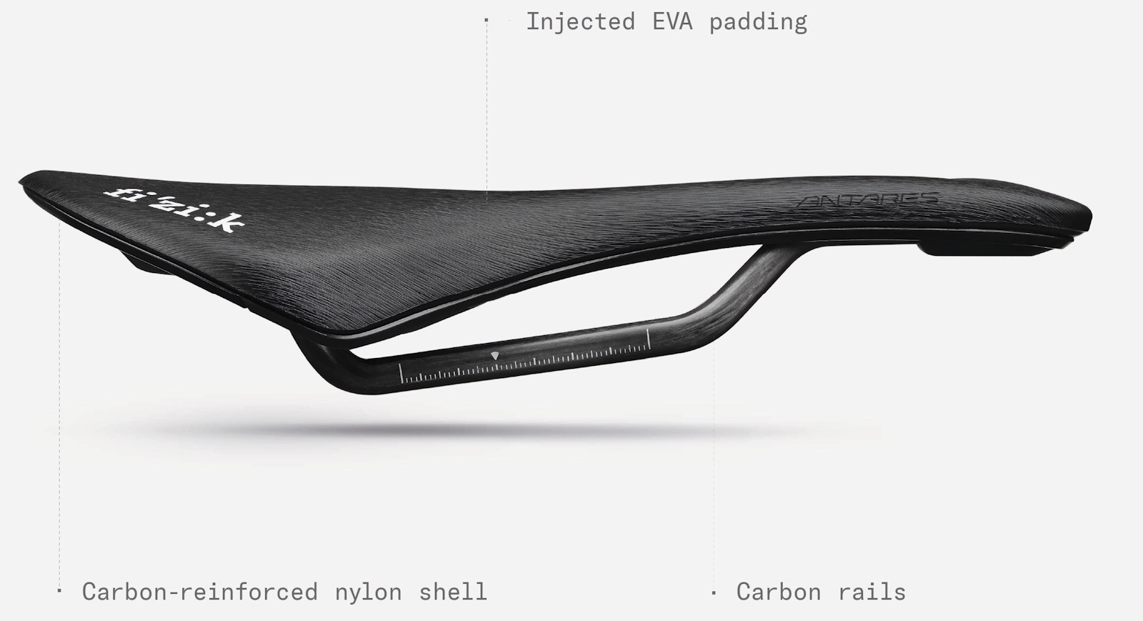 Seit über zwei Jahrzehnten ein Erfolgsname innerhalb der fi’zi:k-Sattelfamilie, stellt der Antares R1 Light den neuesten Entwicklungsschritt dieser siegreichen Linie dar. Mit seinem flachen Profil und dem ausgeprägten Übergang von der Nase zu den Flanken ermöglicht der Antares eine grosse Bewegungsfreiheit nach vorne und hinten. In der Light-Version kombiniert er gewichtsoptimierte EVA-Polsterung mit Carbon-Streben und ein Carbon verstärkten Nylonschale – für kompromisslose Racing-Performance.